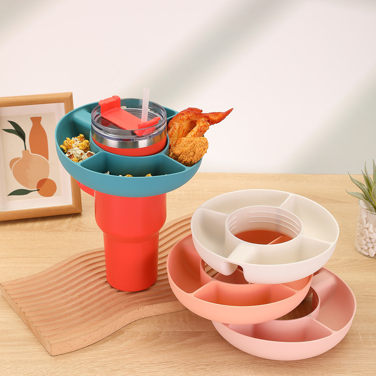 Introducing our versatile Plastic Snack Tray Accessory, designed to enhance your snacking experience! This easy-to-assemble accessory is ideal for use with flat mouth cups, making it a perfect addition to your kitchenware. Say goodbye to messy snacking and hello to convenience!